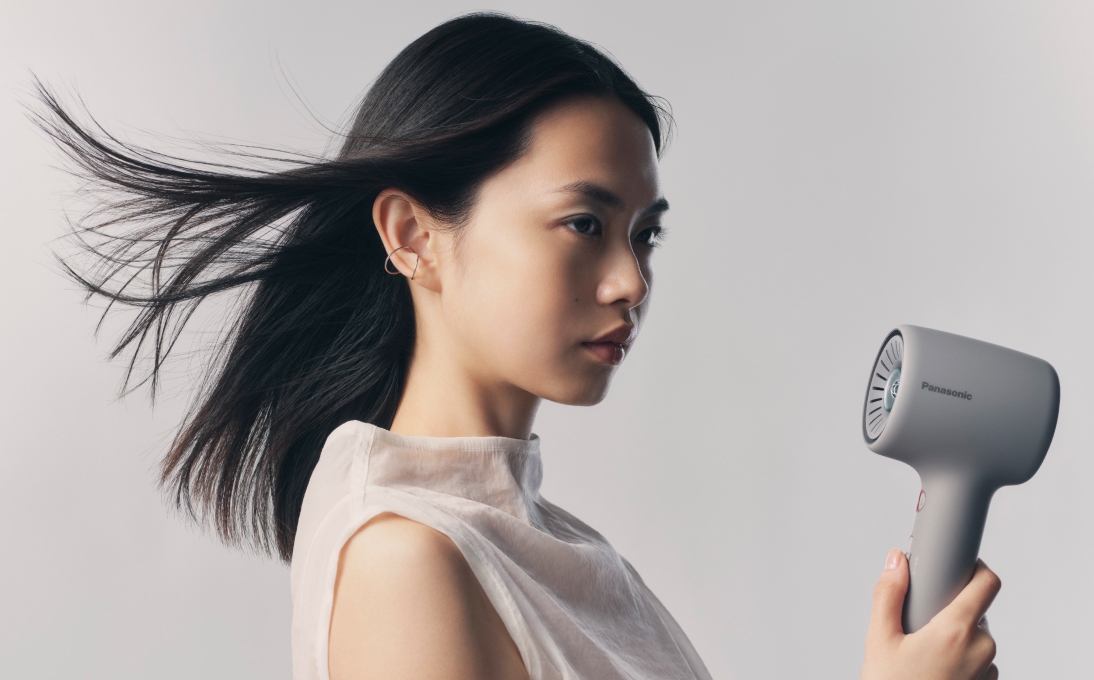 小型・高回転モーターによる大風量で、「迷いも吹き飛ぶ、驚きの速乾」と「UVダメージ抑制」を両立するヘアケア製品で、速乾に加え、Wミネラルや温風リズムヘッドスパ機能が特徴です。